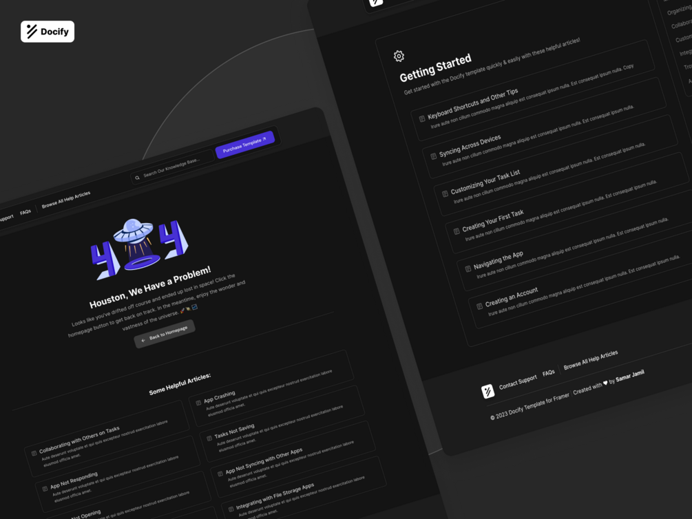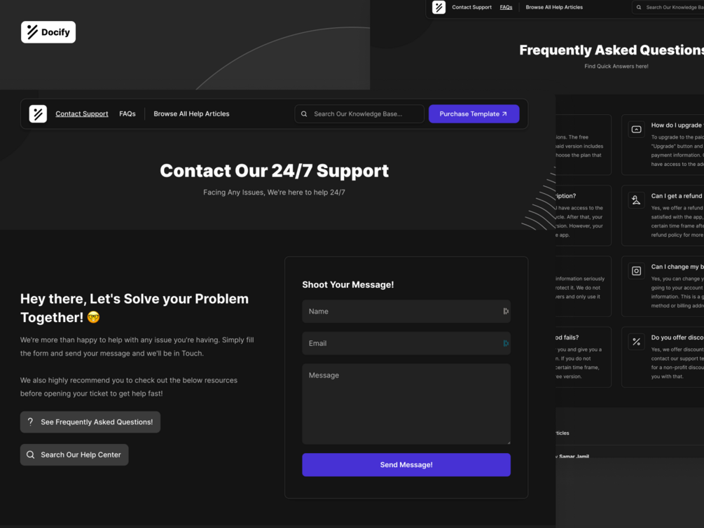Docify Template's minimalist design ensures a clean and professional look for the website while Streamlining the task of creating a world-class Helpdesk system right inside Framer, allowing you to focus on delivering quality content to your customers.